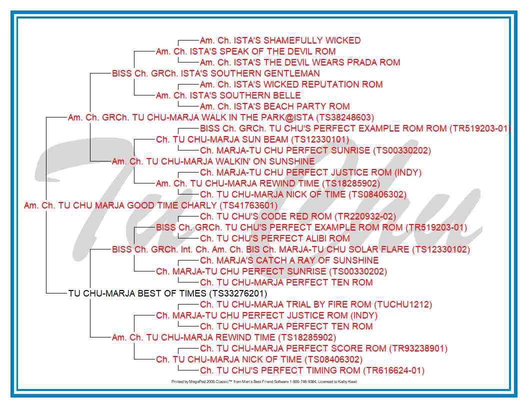 Pedigree for Ch. Tu Chu Marja Good Time Charly