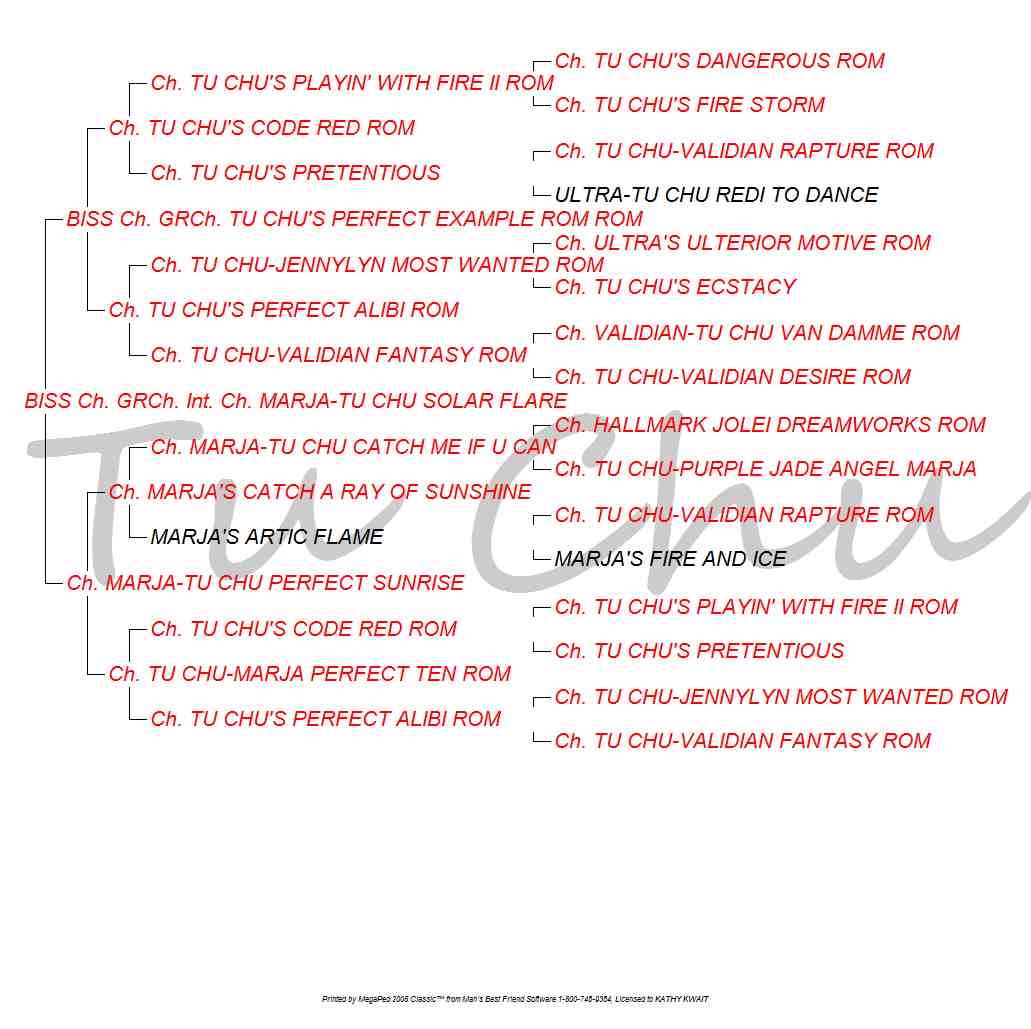 Pedigree for BIS Int Ch & BISS GCH. Marja-Tu Chu's Solar Flare