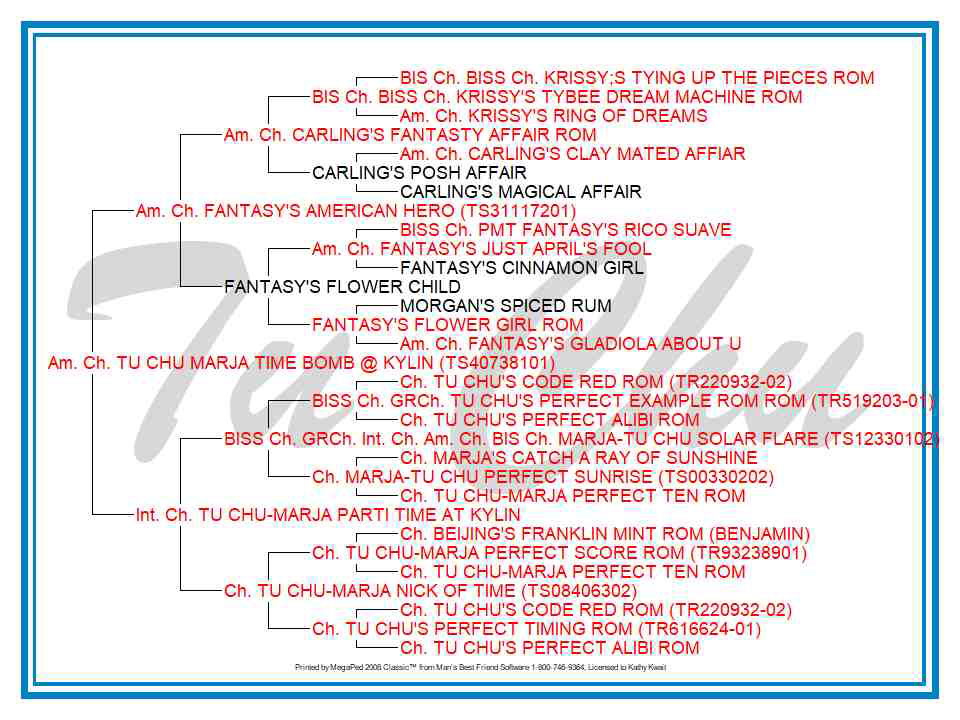 Pedigree for Ch. Tu Chu Marja Time Bomb @ Kylin